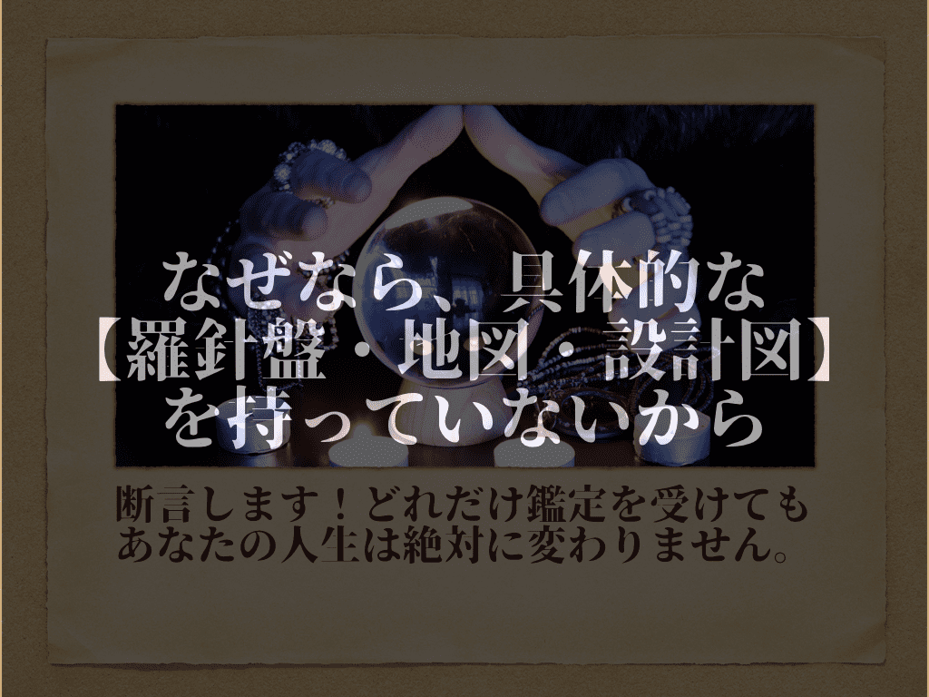 そして、ここで絶対にお伝えしておかなければならないことがあります。それが「どれだけ鑑定を受けてもあなたの人生は絶対に変わりません」ということ。