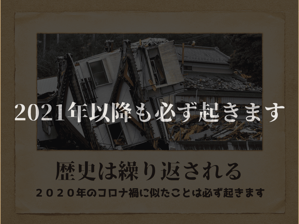 何度もお伝えしていますが「歴史は繰り返す」のです。近いうちに大きな事件が起きて大混乱を招くことが分かっているのであれば僕たちは未来を向いて対策をしなければなりません。